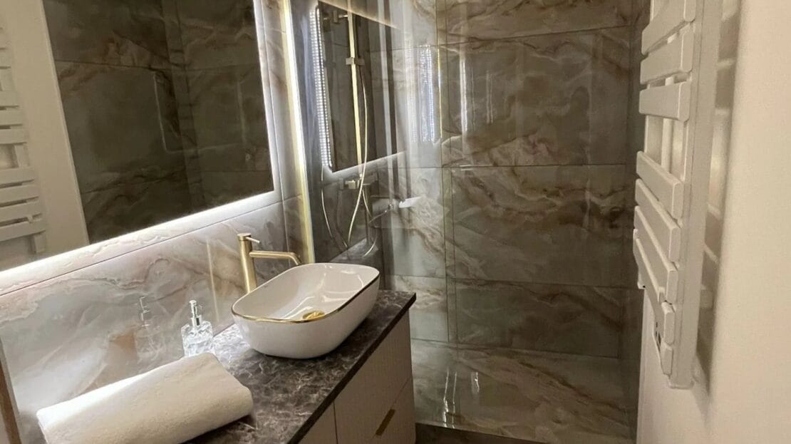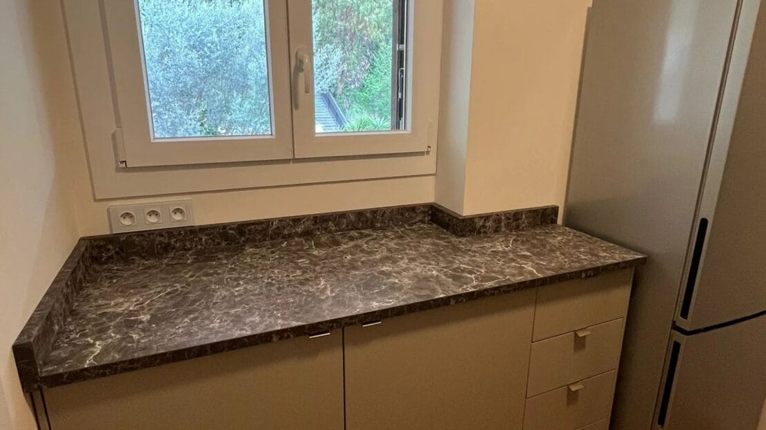 L’appartement a été entièrement rénové, jamais été habité depuis les travaux. Fenêtres, portes, mobilier et cuisine neufs, avec électroménager haut de gamme inclus.